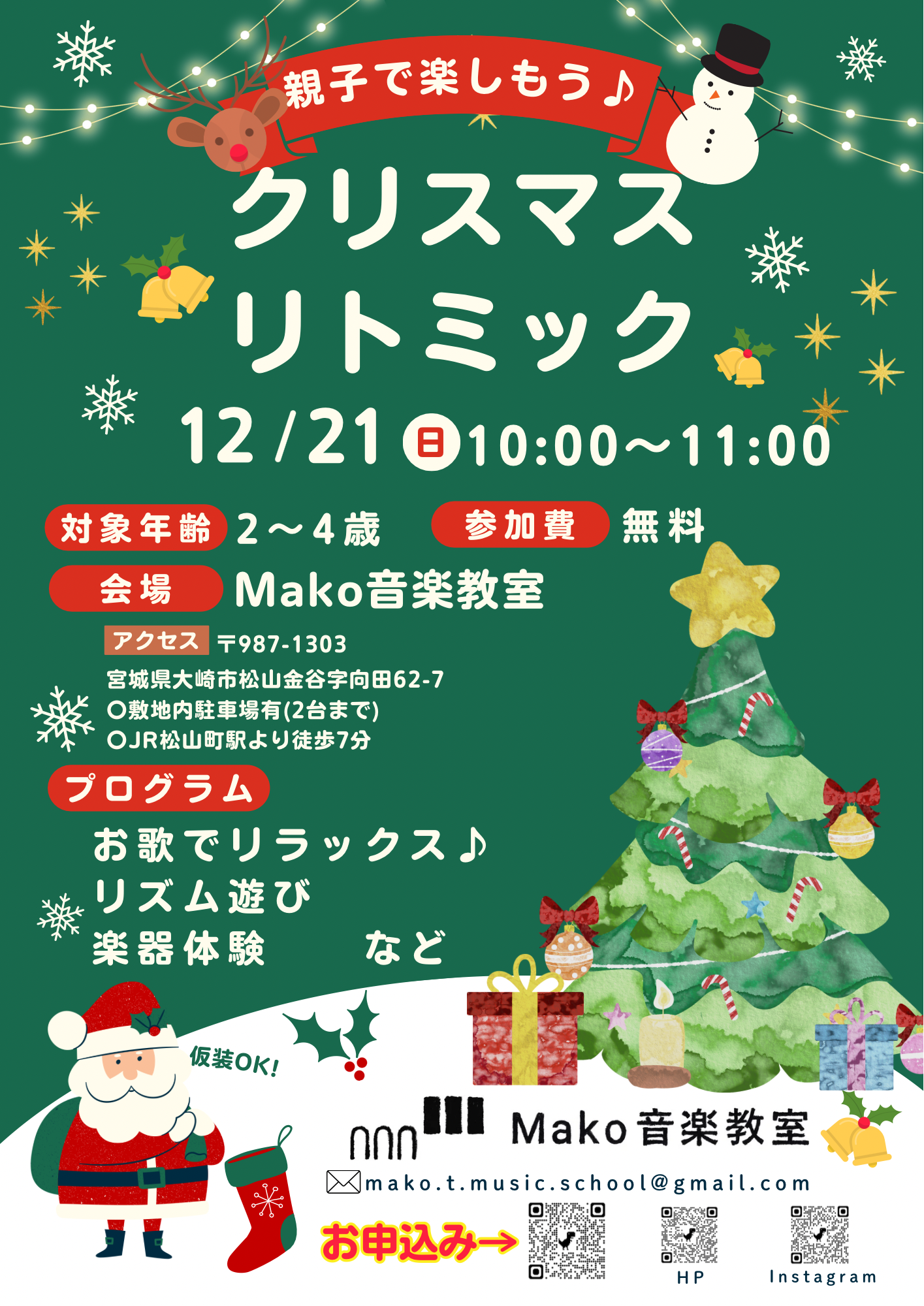 クリスマスソングに合わせて体を動かすことで、お子様の能力をぐーんと伸ばします!